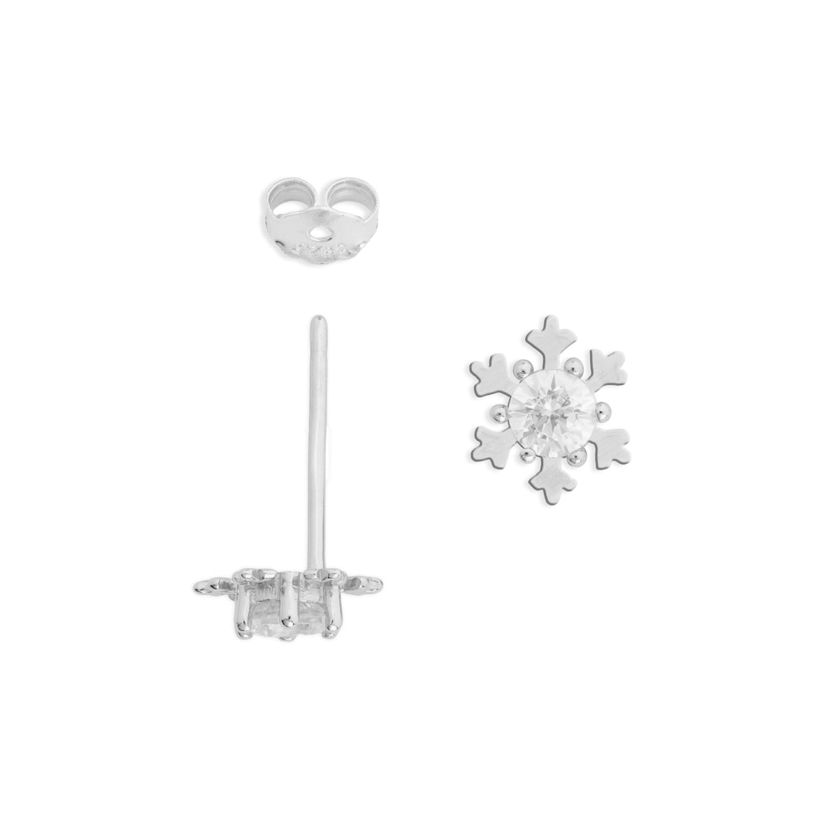 925 Sterling Silver Crystal Snowflake Stud Earrings