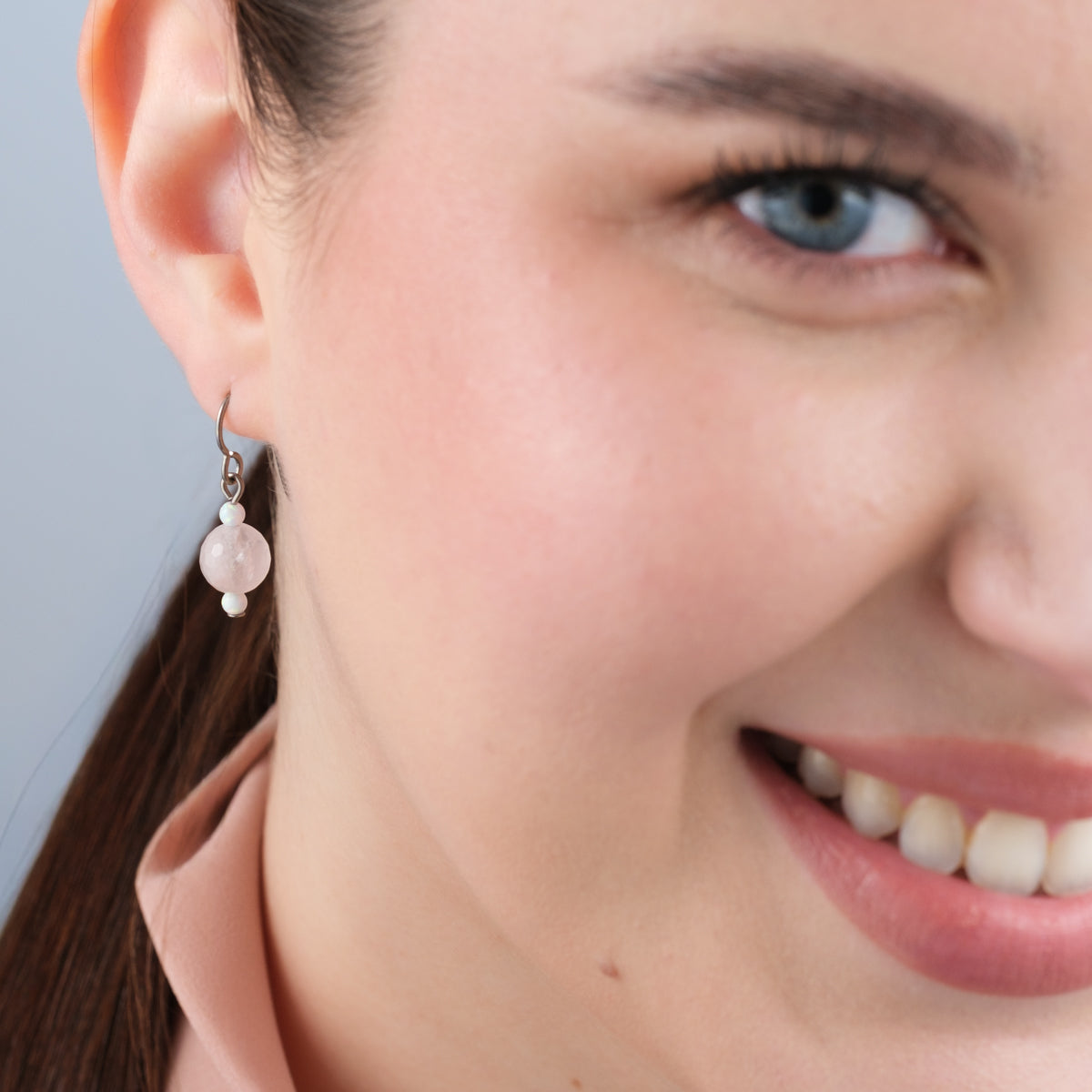 Rose Quartz and Opal Niobium French Hook Earrings - Simply Whispers