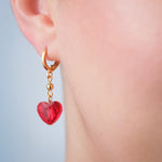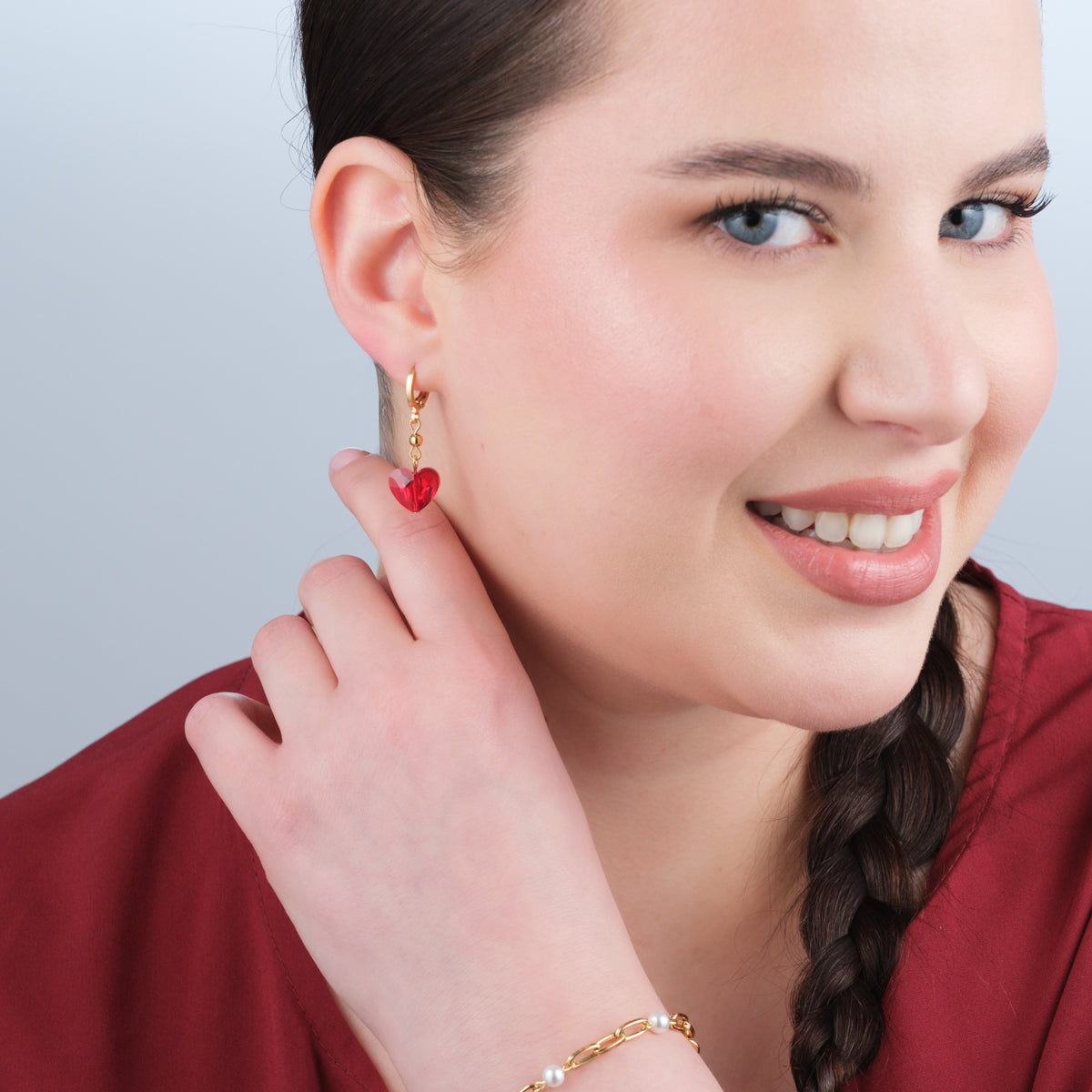 Our Red Heart Charm Gold Huggie Drop Earrings with polished gold huggie hoops and vibrant red heart drops are lightweight, stylish, and perfect for Valentine’s Day, anniversaries, or adding a pop of color to any outfit.