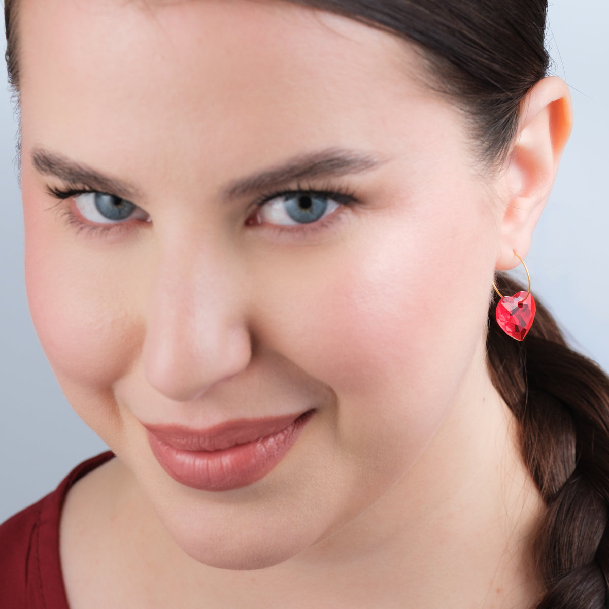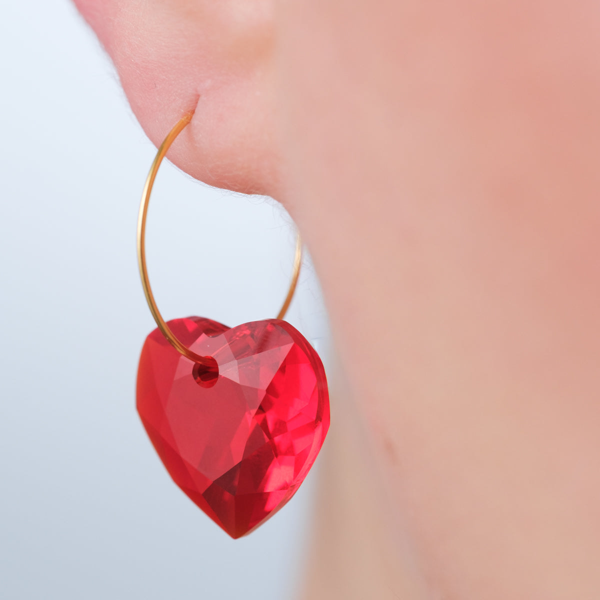 These stylish Red Heart Gold Huggie Earrings are lightweight and comfortable, perfect for a special occasions. A romantic statement accessory that adds a pop of color to any outfit, ideal for gifting on Valentine’s Day!