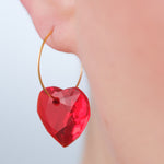 Red Heart Gold Huggie Earrings